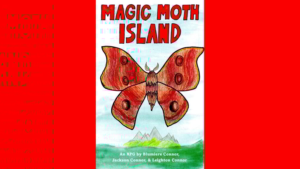 Magic Moth Island is the first RPG written and illustrated by Blumiere Connor (age 13) and Jackson Connor (age 10), along with their dad Leighton Connor (fully grown).